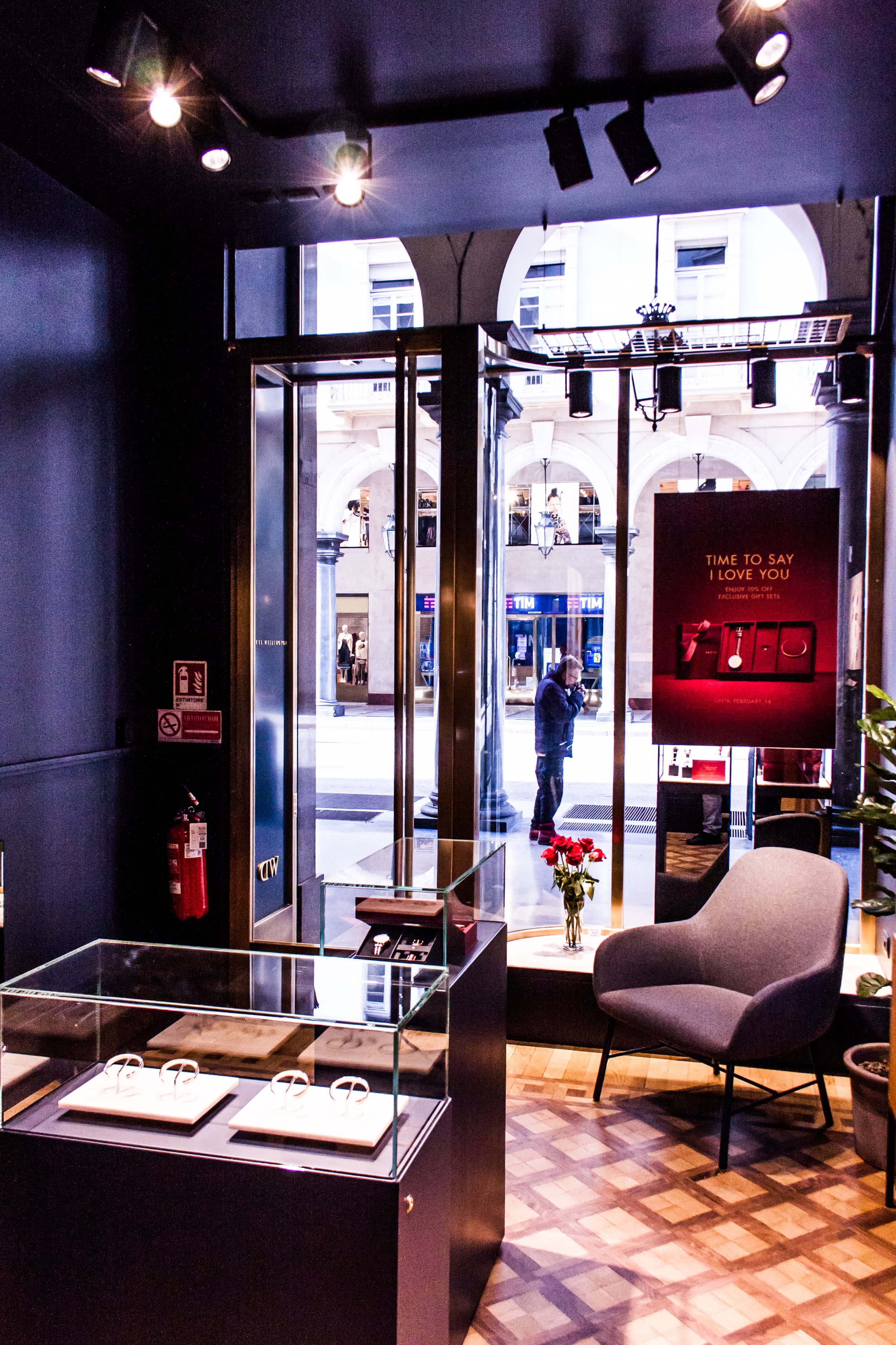 Ispirato dallo stile senza tempo del marchio e dei suoi orologi, la catena di negozi Daniel Welligton ha uno stile minimalista e raffinato, impreziositi dai dettagli in metallo e vetro e del suo inconfondibile tono di blu.