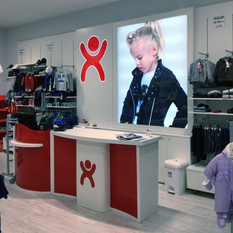 Uno dei principali nomi di riferimento per l’abbigliamento italiano da bambino, con target da 0 a 14 anni. Per IDEXE’ sono stati realizzati 2 negozi su territorio nazionale.