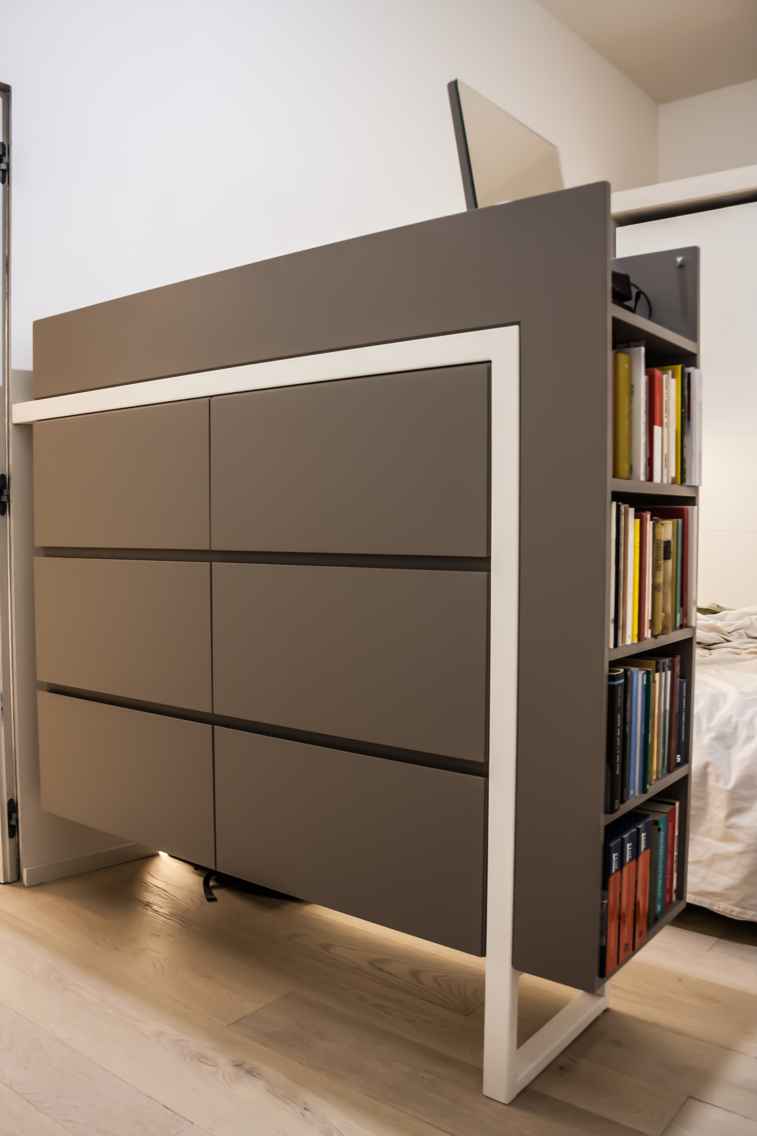 Un progetto sviluppato partendo dai dettagli per poi caratterizzarsi sugli arredi su misura che compongono, definiscono, evidenziano e animano gli spazi della casa, con un gioco di luci, volumi, incastri e colori. Un progetto nato da esigenze e funzioni specifiche frutto di analisi e ascolto del cliente.