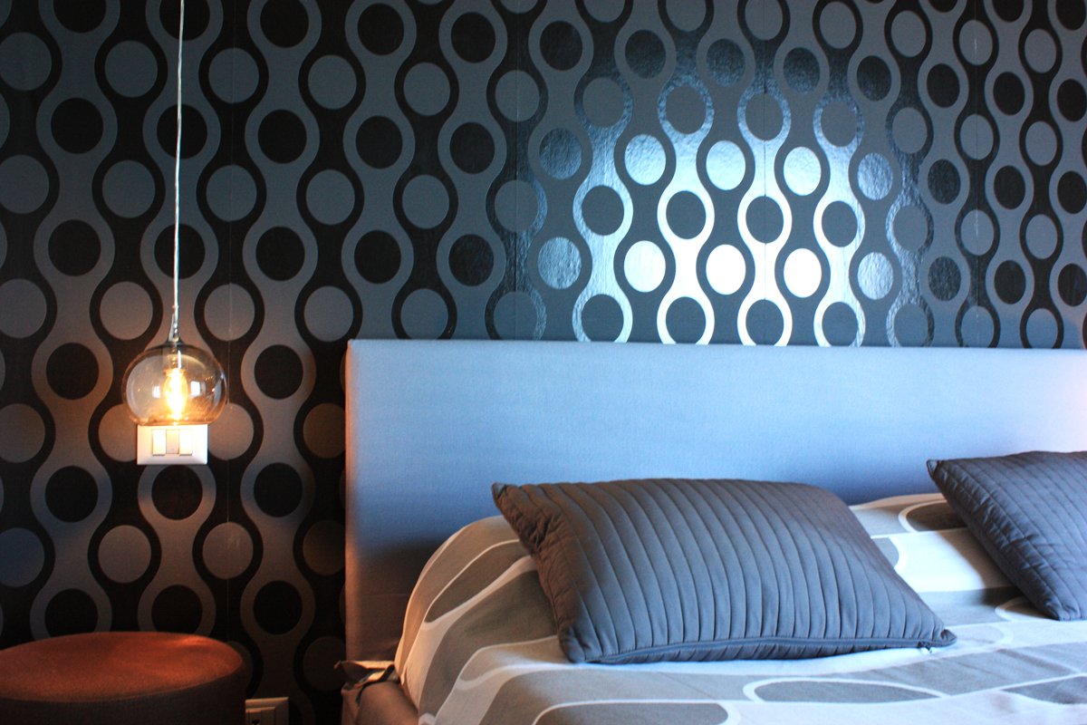Un segno netto, che alterna il bianco al nero e i volumi vuoti a quelli pieni, determina il carattere di questa abitazione ricercata. Dove anche i dettagli di una libreria in legno su misura, le mensole asimmetriche in camera da letto e il mosaico del bagno riprendono il tema portante.