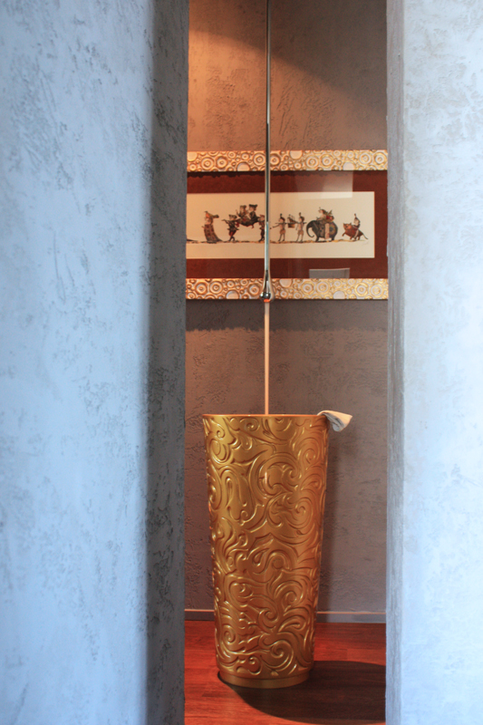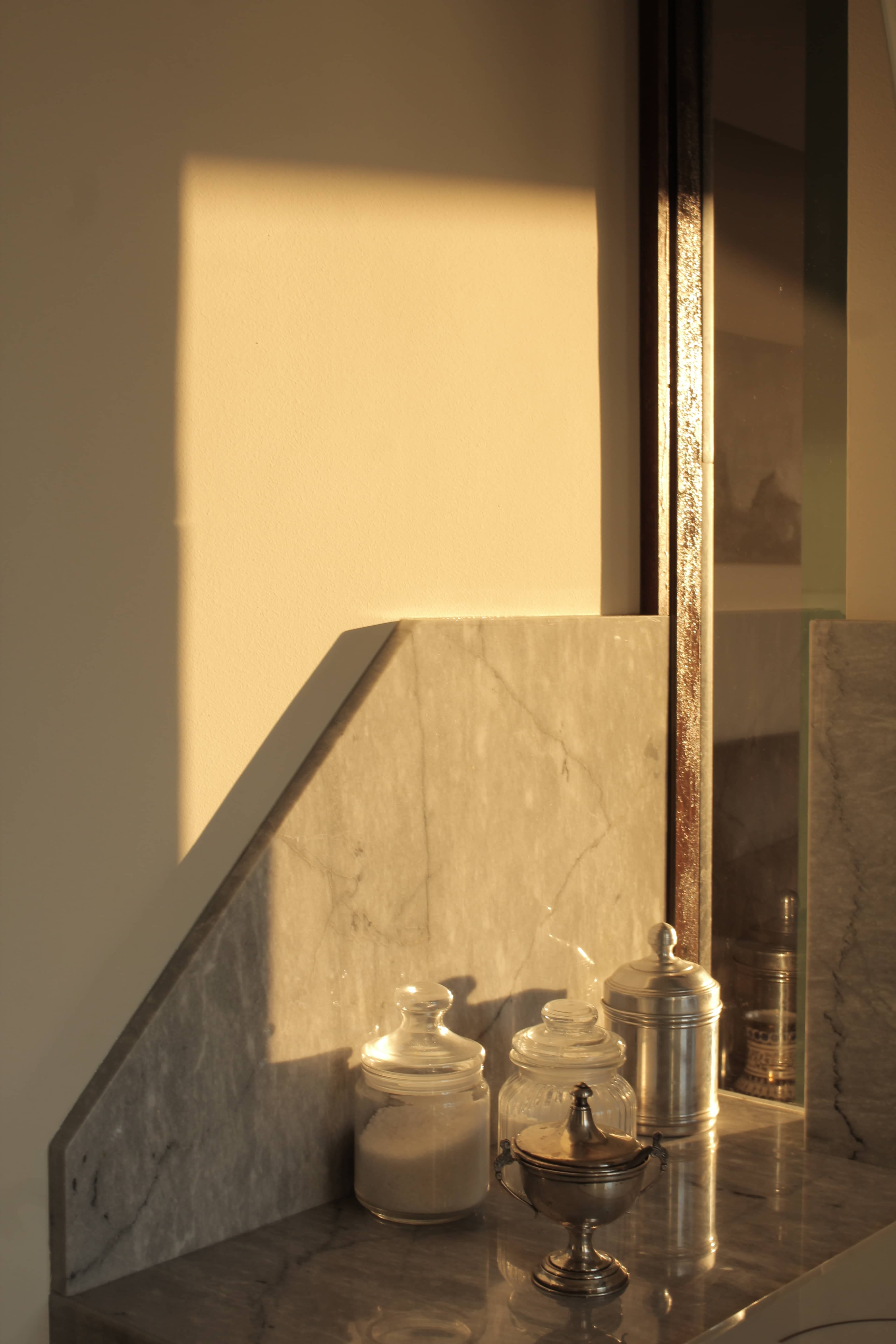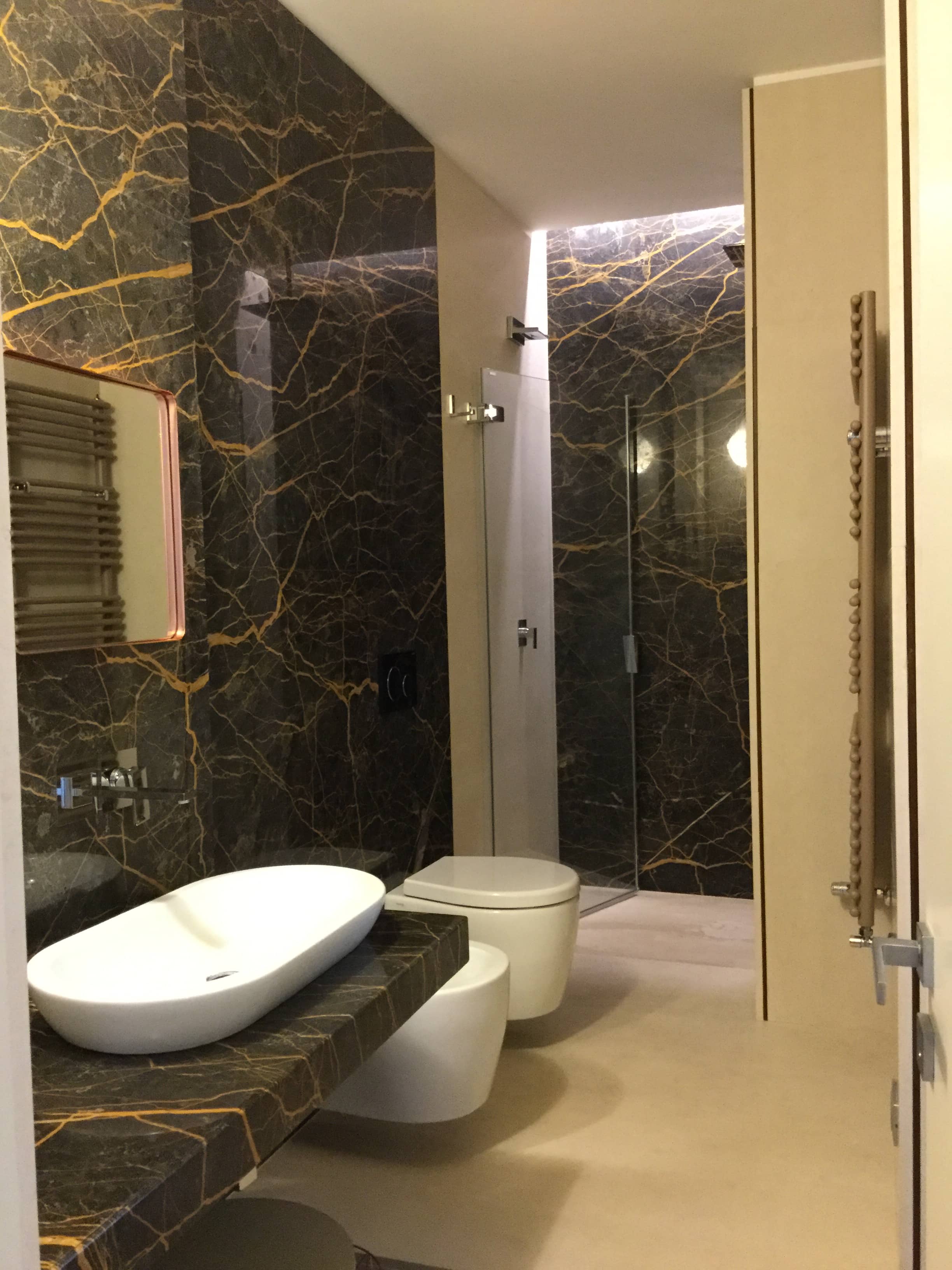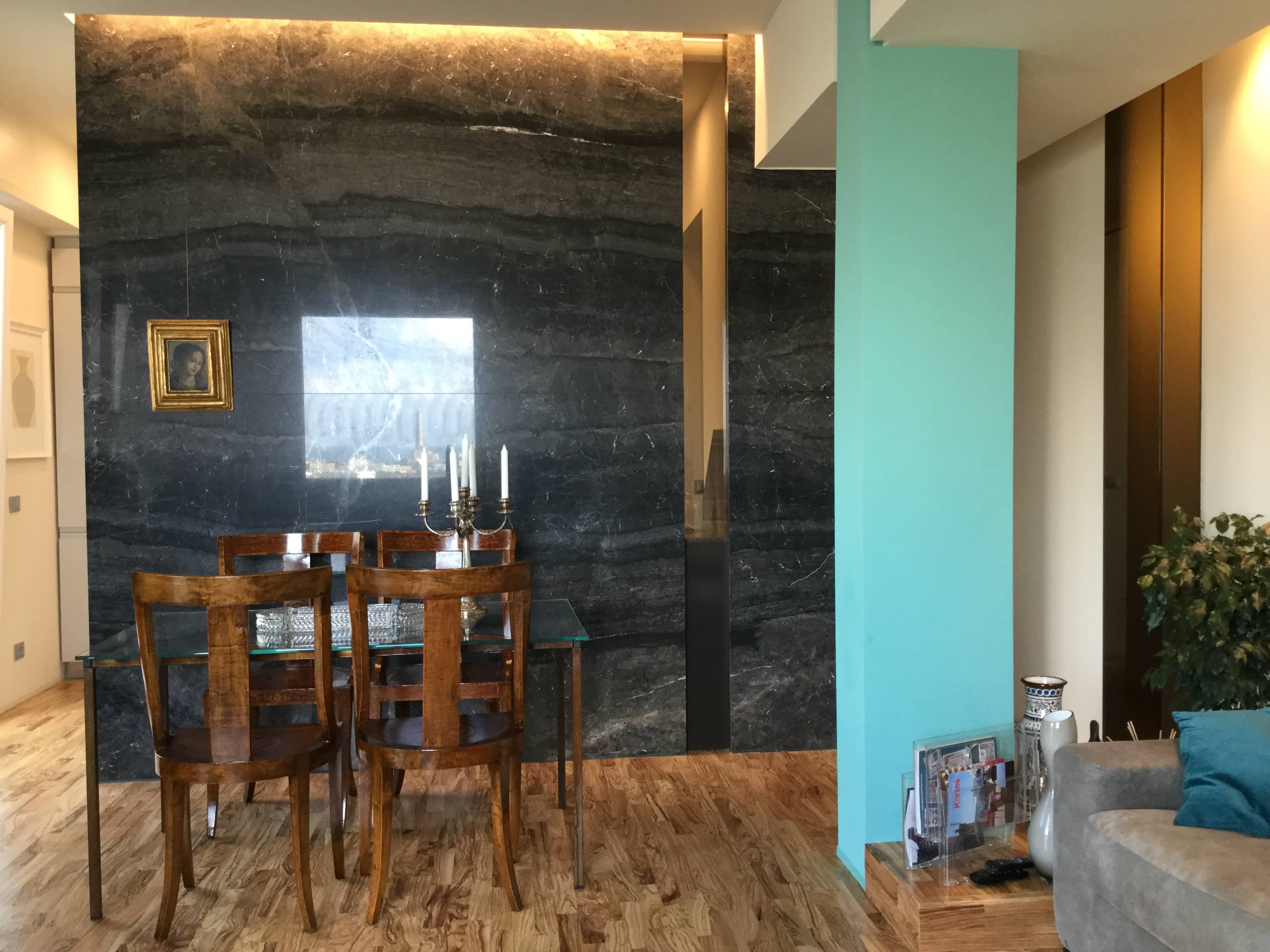 Un contesto panoramico, in cui la luce della città inonda gli ambienti rendendoli dorati e brillanti, tagliando i volumi con geometrie proiettate. Il progetto parte si sviluppa intorno alla luce, nella scelta dei materiali - marmi, legni, vetri - e chiude il cerchio con il dialogo tra antico e moderno, eleganza e funzione.