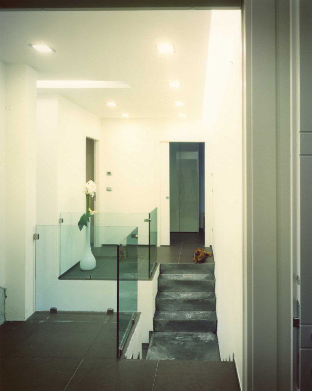 Interni rarefatti, progettati per restituire un senso di leggerezza evidenziato dalle strutture in legno disegnate su misura che diventano di volta in volta elemento architettonico e arredo. I materiali scelti - pietra, cristallo, legno, acciaio - rendono calda un’abitazione essenziale.