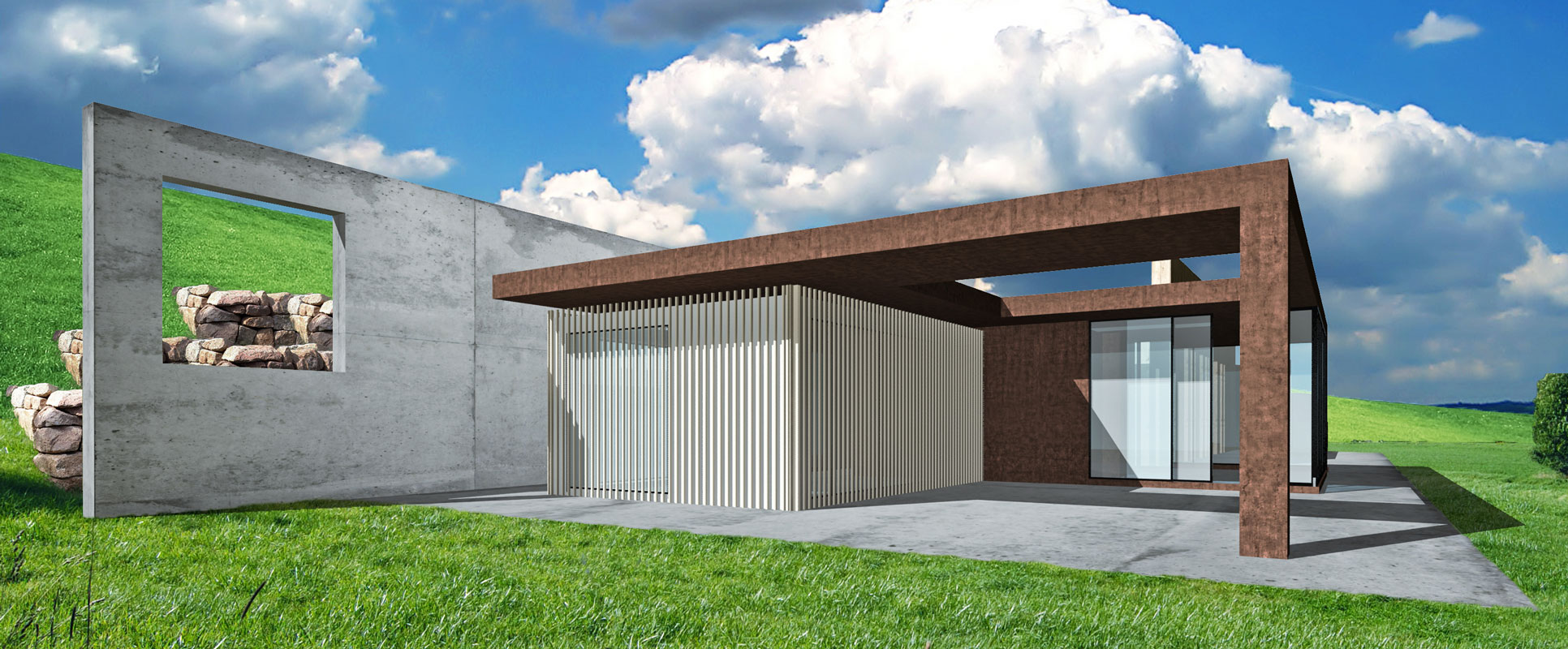 La progettazione di un complesso su terreno scosceso diventa un'opportunità per ripensare volumi, piani e ambienti. Il progetto risale al 2010 e rispecchia le esigenze della committenza adattandosi alla conformità dell'ambiente con un'attenzione particolare alla visuale interna ed esterna grazie alle ampie vetrate e agli scorci ricavati dalle connessioni tra piani e volumi.